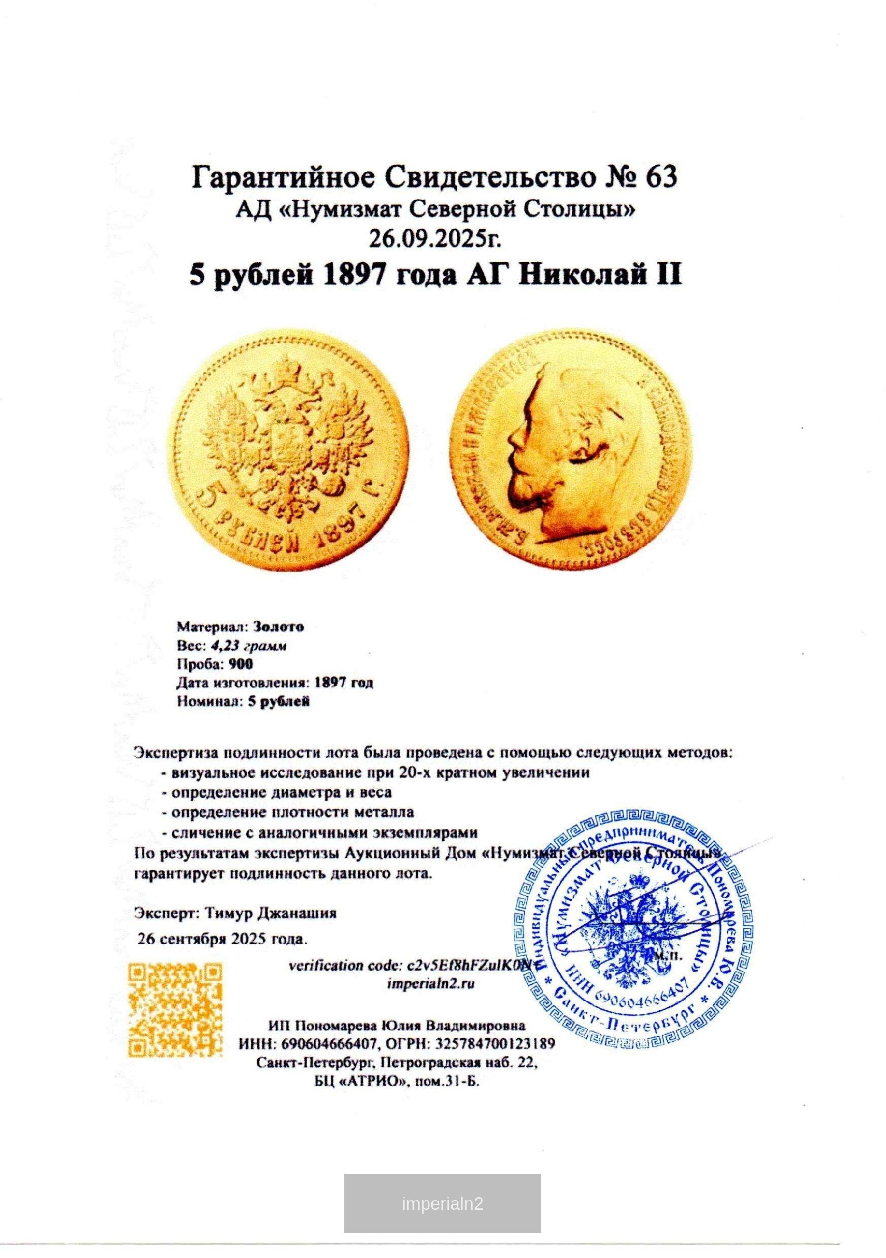 Место проведения экспертизы: Россия, г. Санкт-Петербург, ул. Восстания д.1, «Нумизмат Северной Столицы»