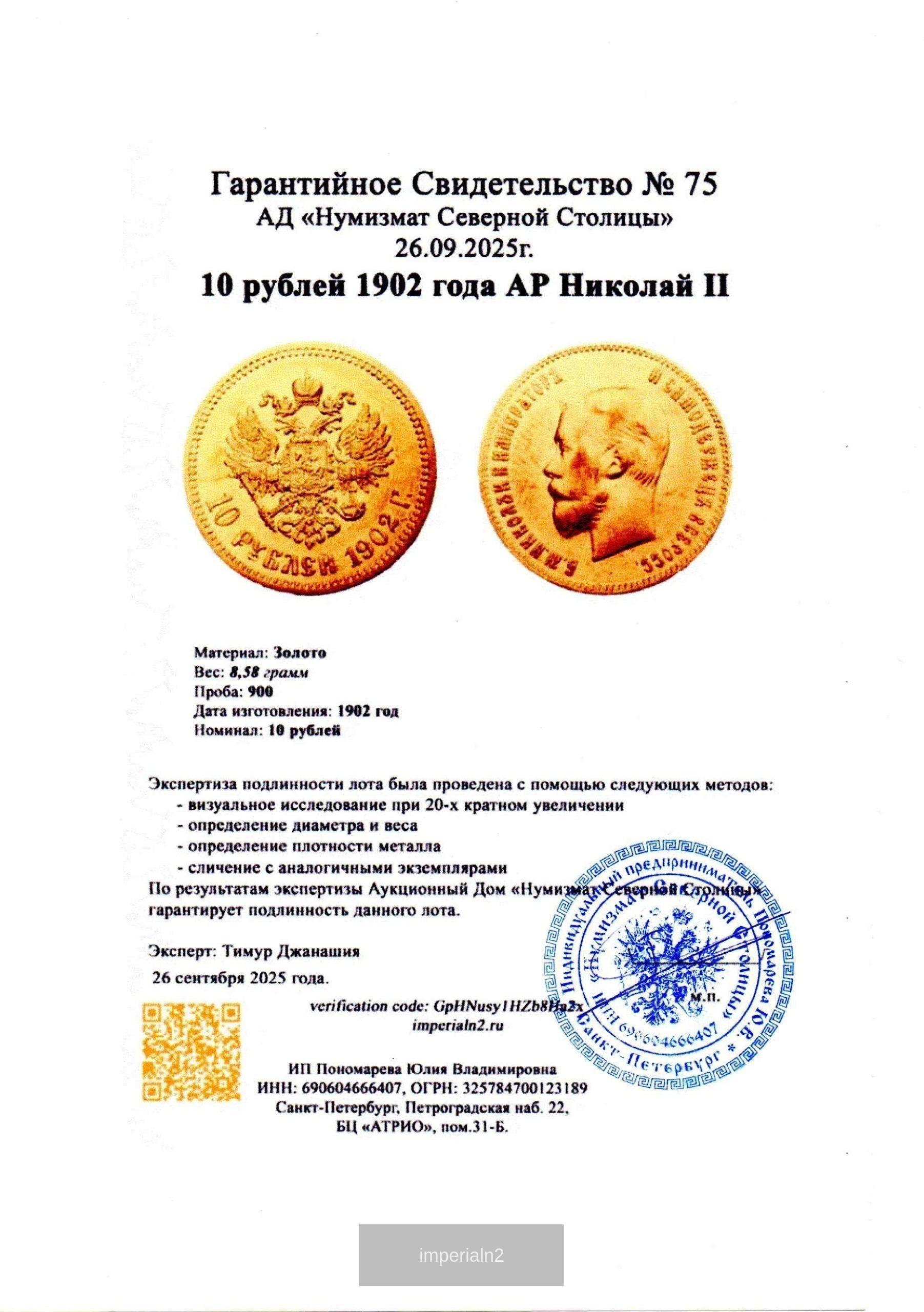 Место проведения экспертизы: Россия, г. Санкт-Петербург, ул. Восстания д.1, «Нумизмат Северной Столицы»