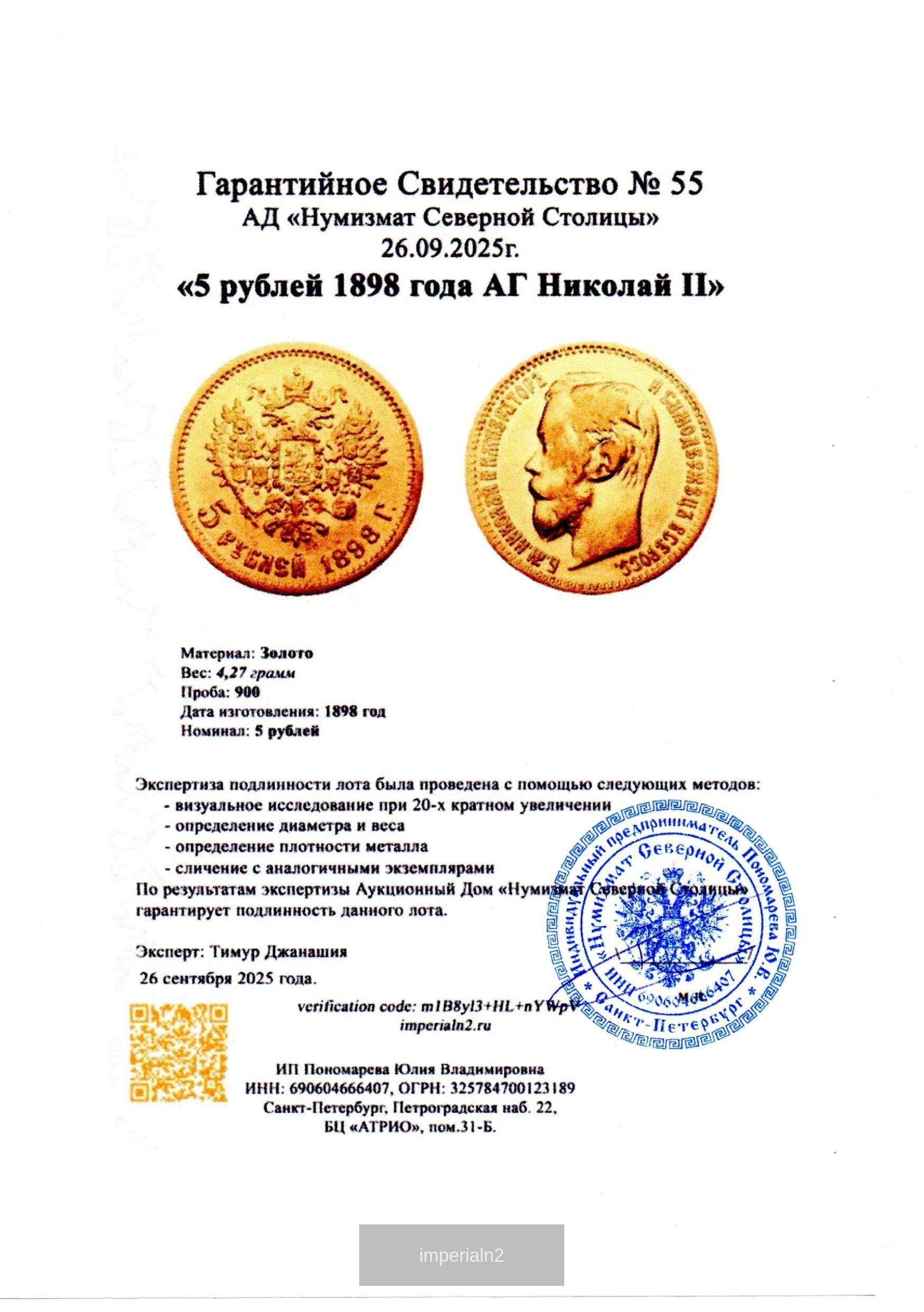Место проведения экспертизы: Россия, г. Санкт-Петербург, ул. Восстания д.1, «Нумизмат Северной Столицы»