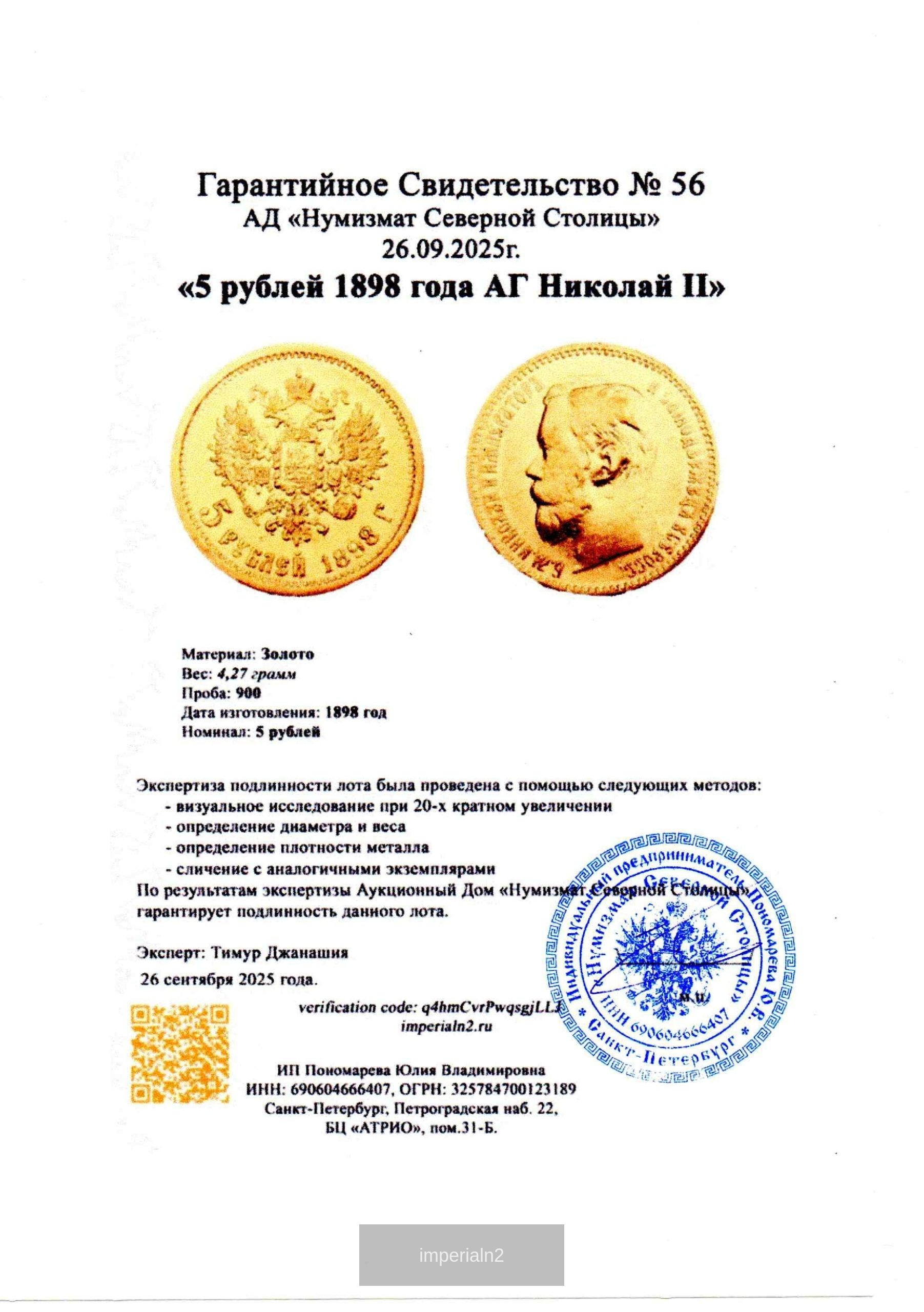 Место проведения экспертизы: Россия, г. Санкт-Петербург, ул. Восстания д.1, «Нумизмат Северной Столицы»