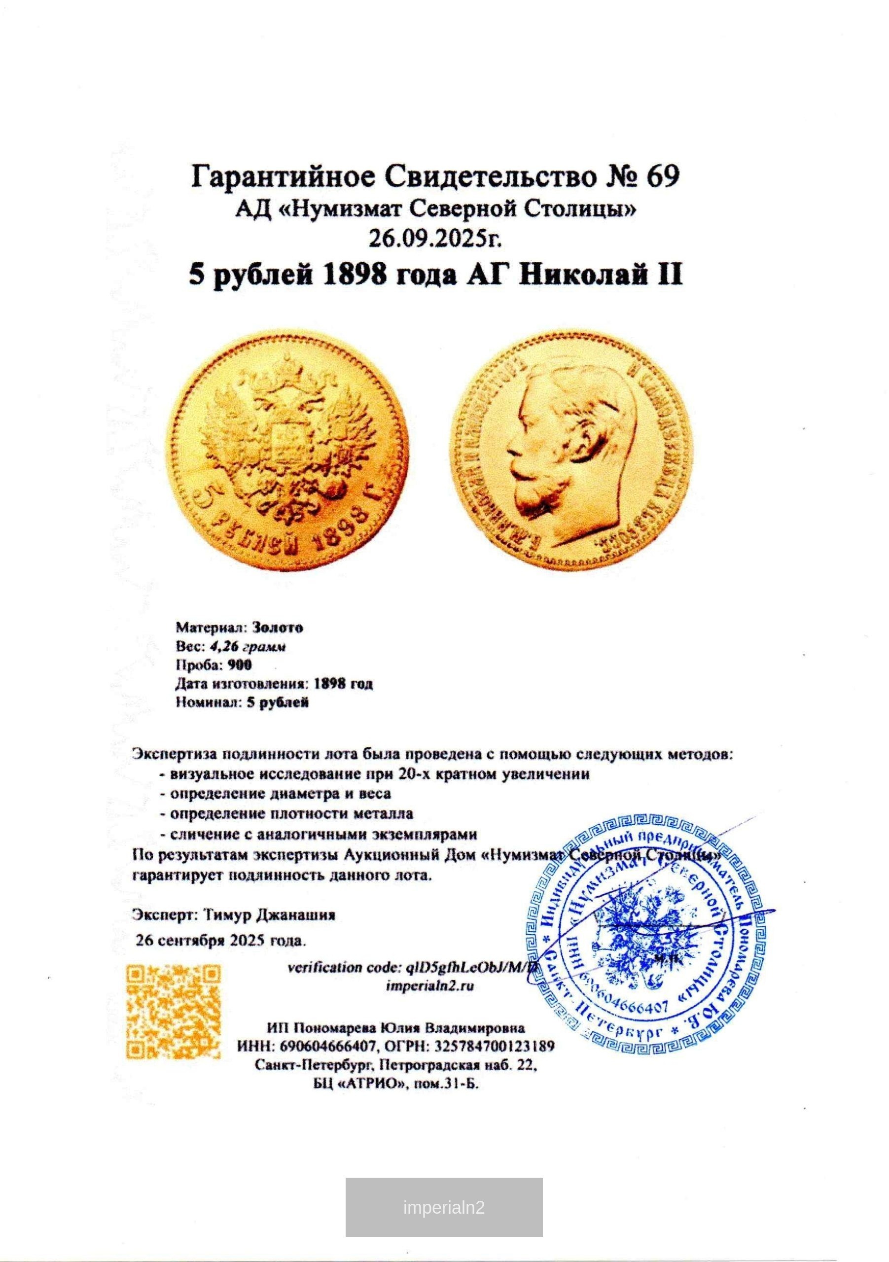 Место проведения экспертизы: Россия, г. Санкт-Петербург, ул. Восстания д.1, «Нумизмат Северной Столицы»